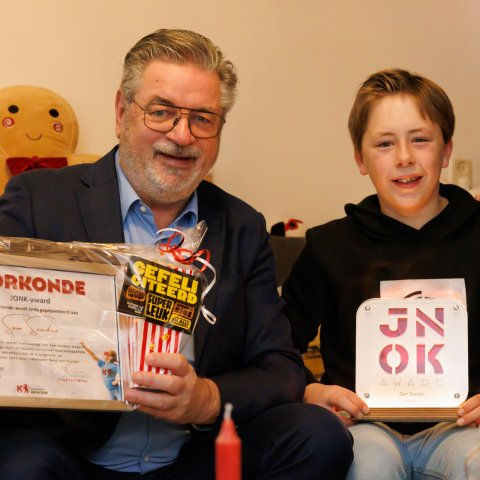 On Thursday evening, November 27, the JONK awards were presented, the annual municipal award for young heroes between the ages of 6 and 21. This year, the awards went to Sam Senden (12) and Jennifer op den Kamp (11), who received the award from Alderman van Drunen (Youth Policy).